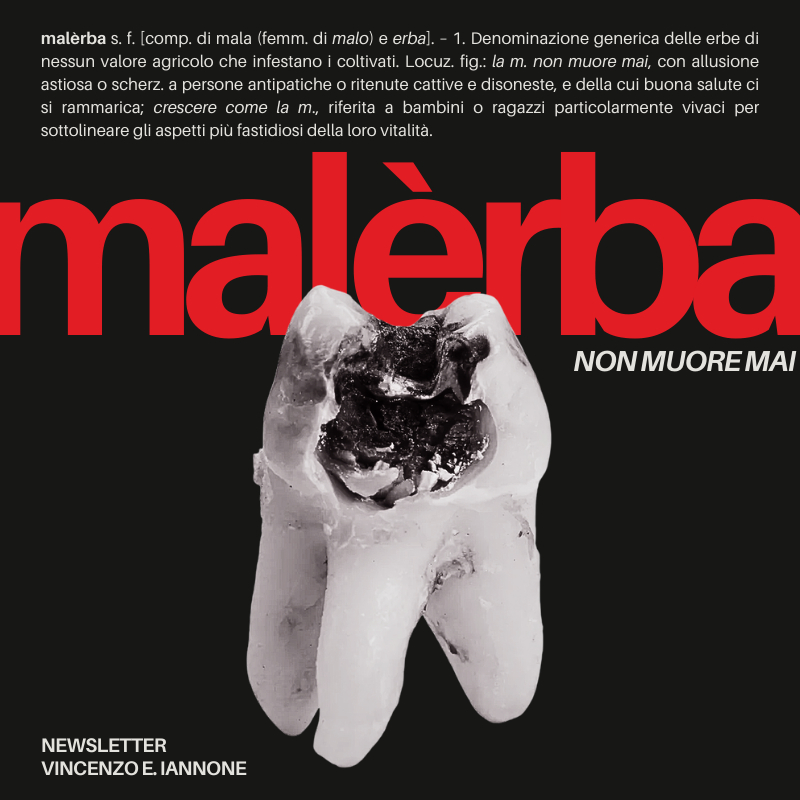 È una newsletter di Vincenzo E. Iannone che tratta di argomenti urticanti. Quelli di cui si parla poco o non se ne parla affatto, quelli che è più facile distogliere l’attenzione. Sproloqui, uno dietro l’altro, e una certa rabbia.